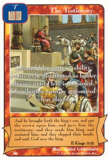 Selected Hero gains 7 ability points to be distributed as holder chooses until Hero is discarded. Distribution must be announced when played. Errata: (Treat special ability as an identifier.)
